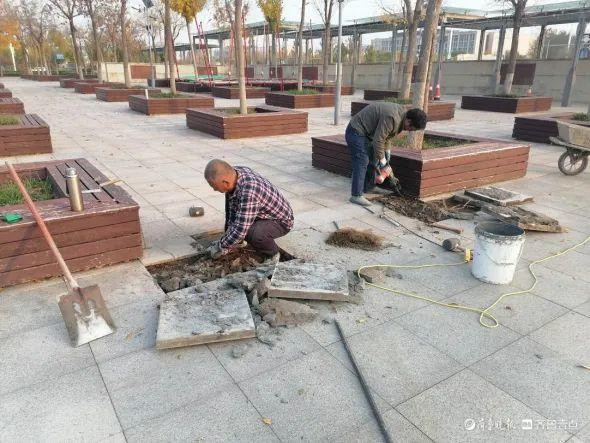 开展园区设施“冬检冬修”专项行动,全面排查园区道路、照明等设施。对约60㎡凸起破损游览线路进行修复,对市民广场等多处约150㎡错台破损地砖、约200平方米老化严重木栈道进行集中维修、更换等,提前消除安全隐患,保障市民游园安全性。