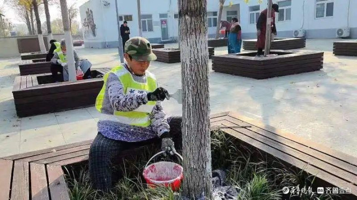 对园区3500棵乔木开展树木涂白、防寒缠布工作,有效控制树皮藏匿的病菌和虫卵,减少冻伤和翌年病虫害的发生与危害。在桂花种植区域设置美观的艺术风障,保障植被安全越冬。